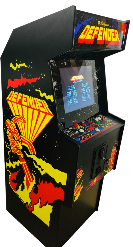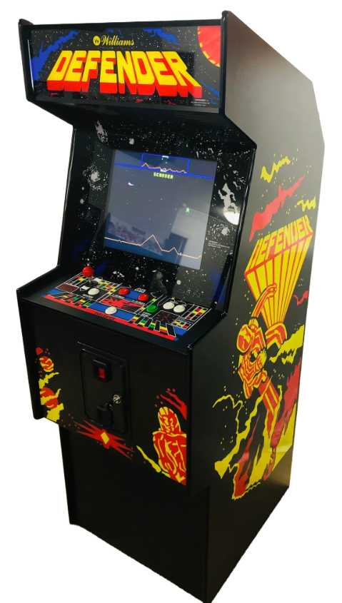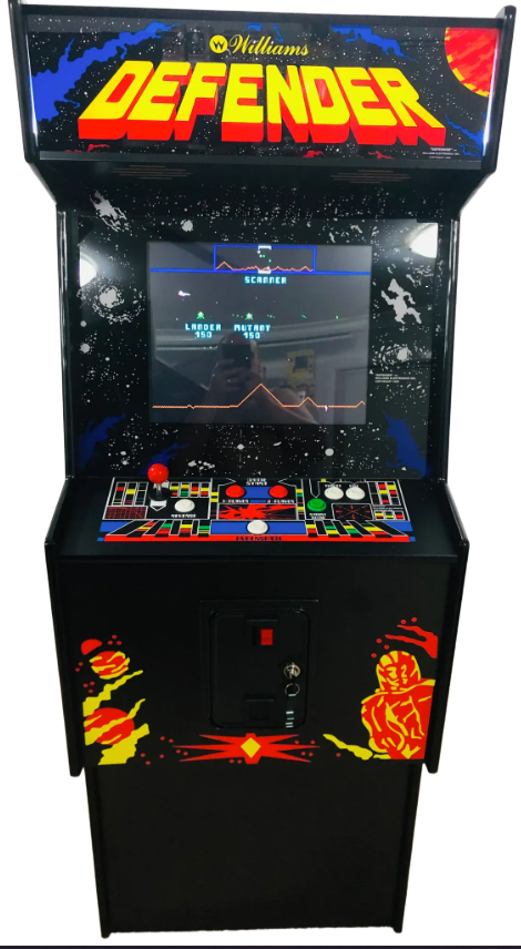 Relive the golden era of arcade gaming with this high-quality reproduction Defender arcade machine, crafted right here in Australia. Designed to look and feel like the original, this machine is built with premium materials and includes authentic details, modern enhancements, and customizable features.
